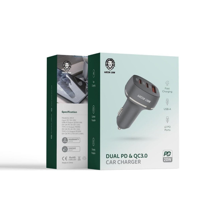 Green Lion Dual PD & QC 3.0 20W Car Charger GN2PD1QCLCCBK