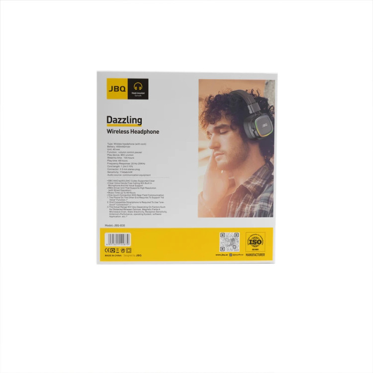 هدفون بیسیم RGB دورگوشی JBQ B30 با بلوتوث 5.3 و پخش 48 ساعته + اتصال سیمی