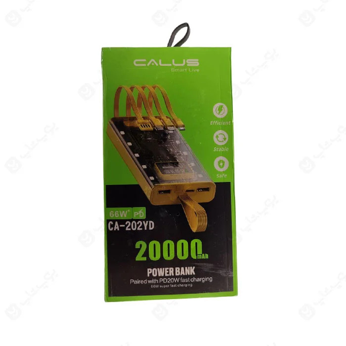 پاوربانک 20k Calus مدل CA-202YD | شارژ سریع 66 وات با ظرفیت 20000 میلیآمپر و کابل های داخلی