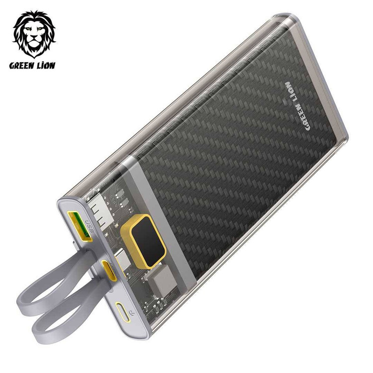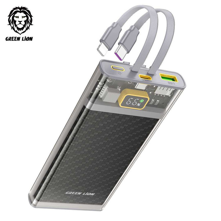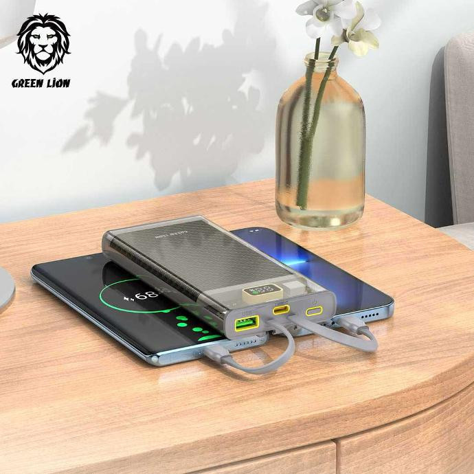 پاوربانک ترنسپرنت 2 Green Lion 10000mAh با کابلهای داخلی و فناوری شارژ سریع PD 20W