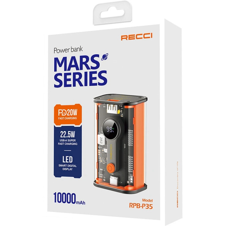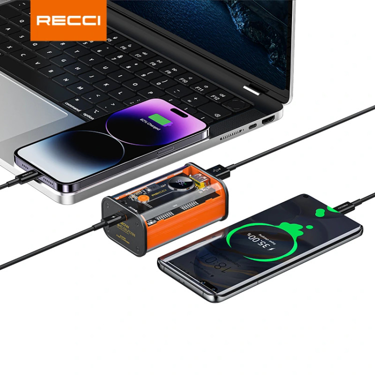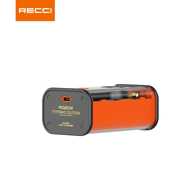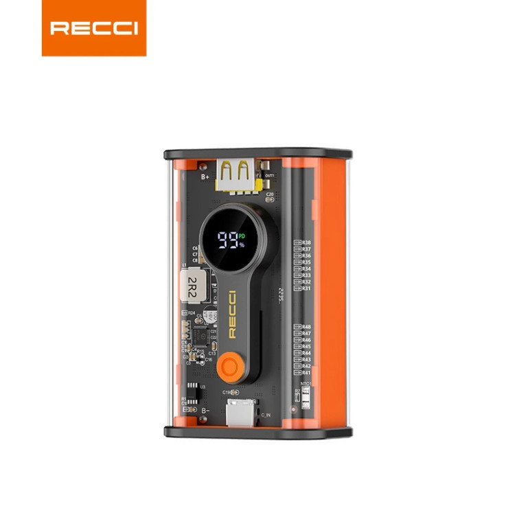 پاوربانک RECCI P35 | ظرفیت 10,000 میلیآمپر، شارژ سریع 22.5 وات و طراحی شفاف