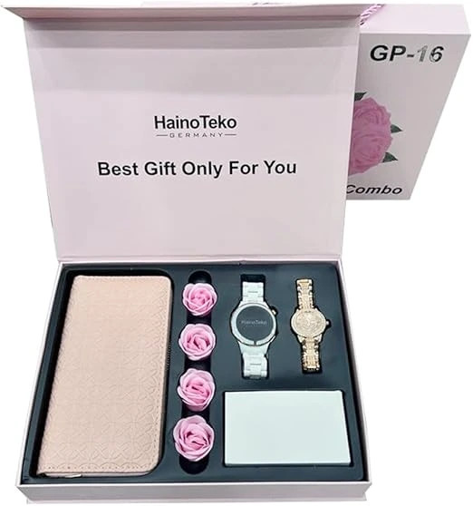 Haino Teko GP-16 یک پکیج کامل و بینقص برای هدیه دادن است. این محصول با ترکیب ساعت هوشمند پیشرفته، ساعت آنالوگ مجلل، بندهای قابل تعویض و کیف شیک، هر آنچه برای یک هدیه خاص نیاز دارید را ارائه میدهد. اگر به دنبال هدیهای هستید که عشق و توجه شما را نشان دهد، این پکیج انتخابی بینظیر است.