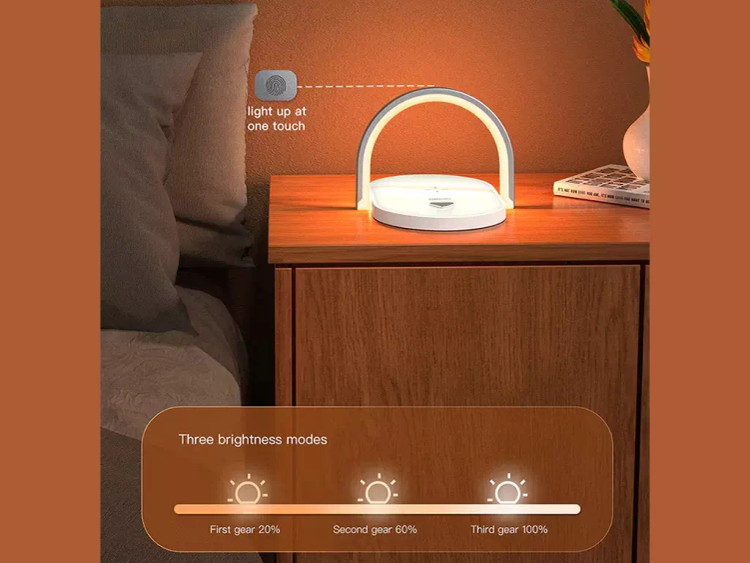 پشتیبانی از توان حداکثر 15 وات برای شارژ سریع و ایمن دستگاههای مجهز به فناوری Qi. این دستگاه توان خروجی متغیر 5 وات، 7.5 وات، 10 وات و 15 وات را ارائه میدهد و به طیف گستردهای از گوشیهای هوشمند و گجتهای پشتیبانیشده متصل میشود. - چراغ خواب با نور قابل تنظیم: