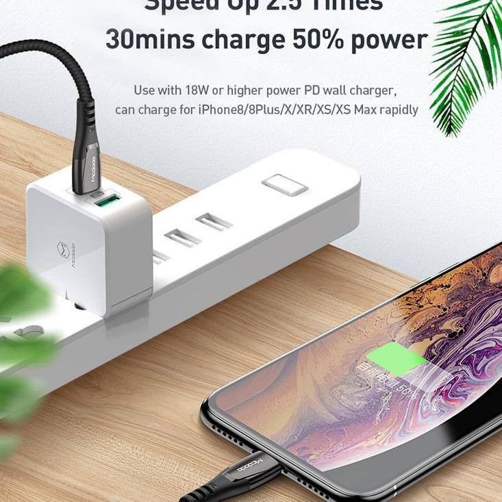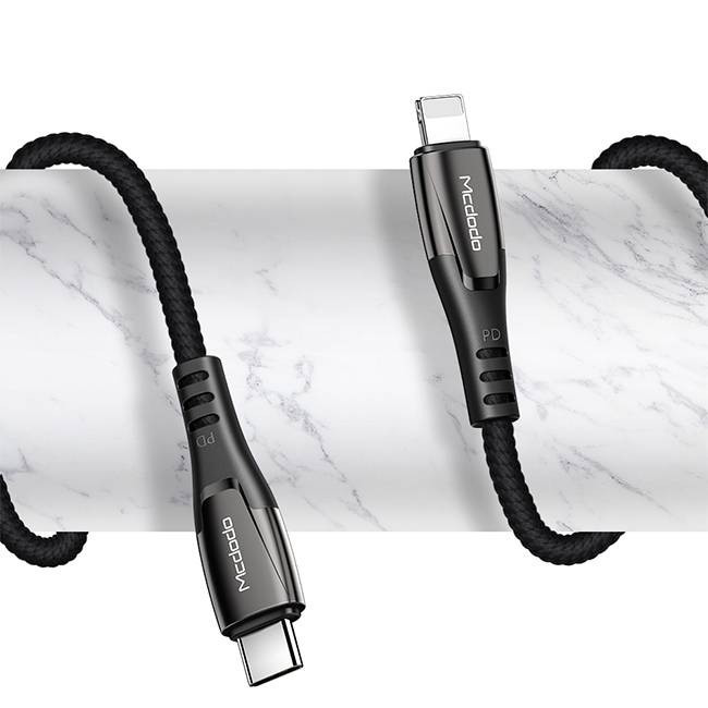 اگر به فکر طول عمر باتری گوشی موبایل خود هستید پس حتما باید از یک کابل و شارژر با کیفیت استفاده کنید. پیشنهاد ما به شما کابل CA-708 محصولی از شرکت Mcdodo بوده که برای گوشی های دارای درگاه لایتنینگ مناسب می باشد. جنس سوکت های این محصول از پلاستیک تقویت شده و فلز می باشد که مقاومت بالایی در برابر ضربه و فشار دارد و ازآسیب دیدن کابل جلوگیری می کند. این کابل دارای توان 18 وات بوده و همین امر باعث شده تا بتواند گوشی شما را با سرعت بسیار بالایی شارژ بکند و علاوه بر این می توانید اطلاعات خود را هم با سرعت بالا انتقال دهید. طول این کابل 120 سانتی متر بوده که برای استفاده های روزمره بسیار مناسب می باشد. با استفاده از این کابل میتوان به شارژ 50% در عرض 30 دقیقه رسید، کمپانی Mcdodo برای جلوگیری از گره خوردن ، کشش و پارگی این محصول آن را به صورت کنفی طراحی کرده و بر روی بدنه کابل روکشی از الیاف در هم تنیده می باشد که مقاومت آن را بسیار بالا برده است.