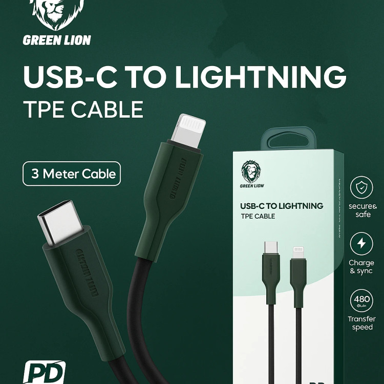 کابل USB-C به Lightning برند Green Lion با طراحی ویژه و طول ۳ متر، یکی از بهترین انتخابها برای شارژ سریع و انتقال اطلاعات بین دستگاههای اپل و آداپتورهای مدرن Type-C محسوب میشه.
