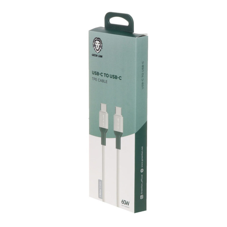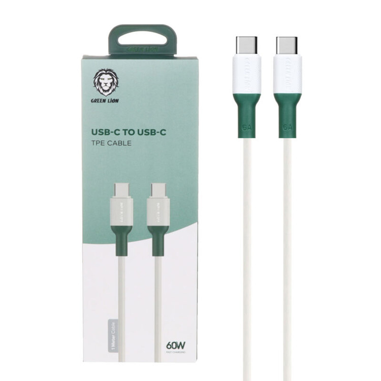 کابل شارژ Green Lion تایپسی به تایپسی TPE، طول ۱ متر، توان ۶۰ وات، مناسب شارژ سریع