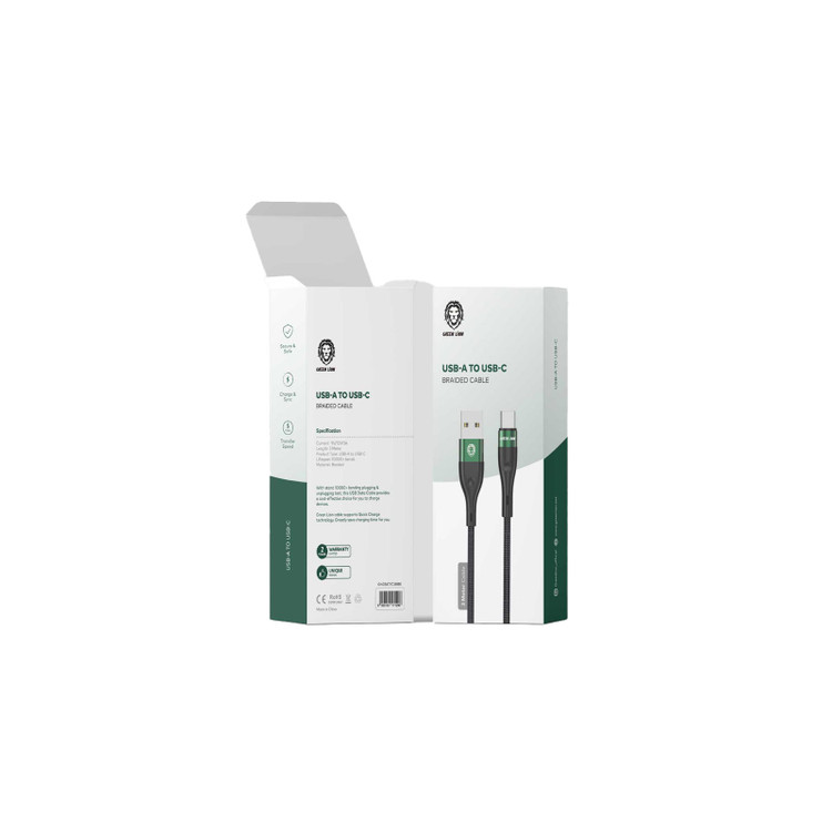 کابل شارژ USB-A به USB-C برند Green Lion ، طول 3m مناسب برای شارژ سریع و انتقال داده