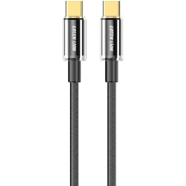 کابل شارژ تایپسی به تایپسی Green Lion مدل Tough با توان ۶۰ وات، طول ۱ متر، با ساختار شفاف و آلومینیومی تقویتشده