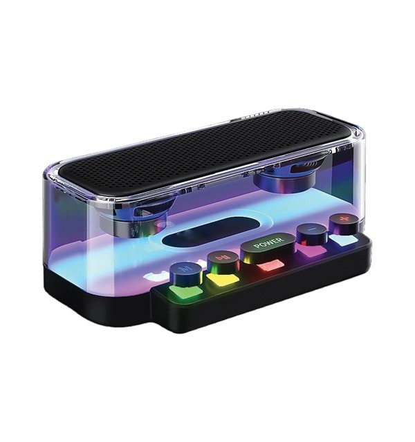اسپیکر Z6 از اون دسته گجتهای جمعوجوره که برای استفاده روزمره، سفر یا جمعهای دوستانه خیلی به کار میاد. طراحی خاص با نورپردازی LED چندرنگ باعث میشه علاوه بر یک وسیله کاربردی، یه آیتم دکوراتیو هم باشه.