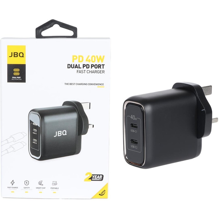 شارژر دو پورت سریع تایپ سی JBQ مدل HC-740 با توان 40 وات، مناسب آیفون و سامسونگ