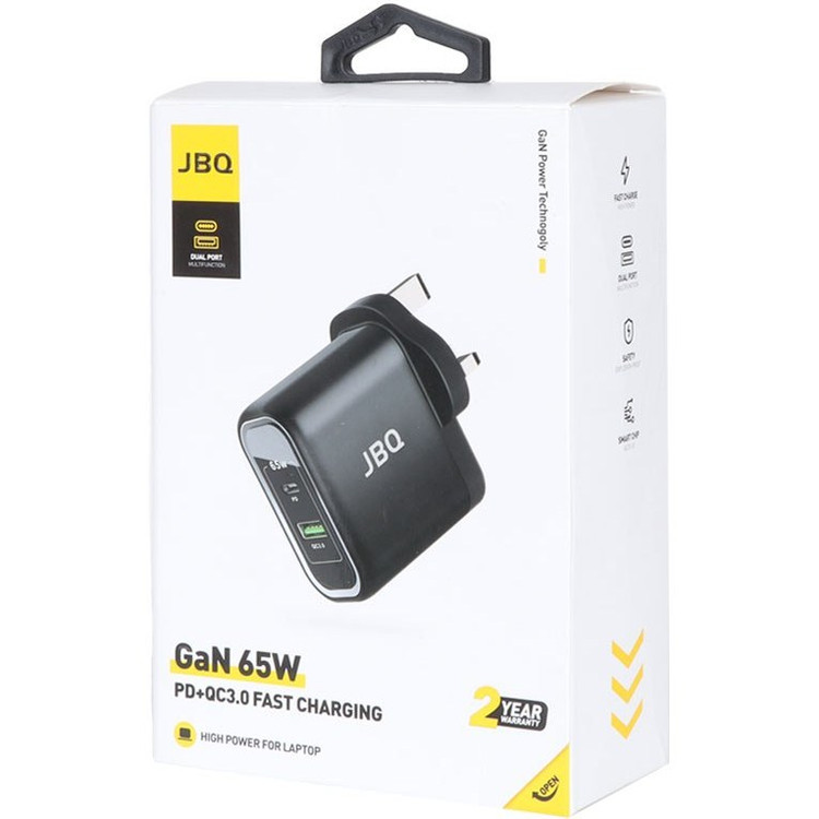 شارژر GaN 65W دو پورت JBQ مدل HC-765 با PD + QC3.0 مناسب لپتاپ و موبایل