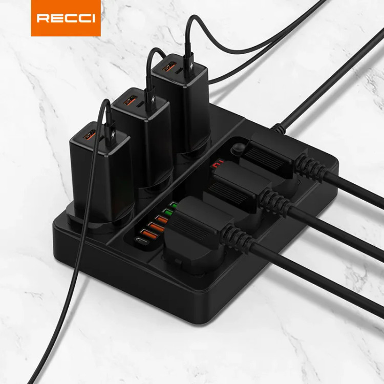Recci RC07 برای میز کار، خانه یا اتاق خواب عالیه — مخصوصاً اگه چندین وسیله برقی یا شارژی همزمان داری.