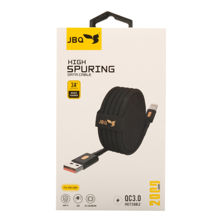 کابل شارژ و دیتای لایتنینگ فنری JBQ مدل High Spuring طول 2 متر با روکش بافته ضخیم و خروجی 3 آمپر