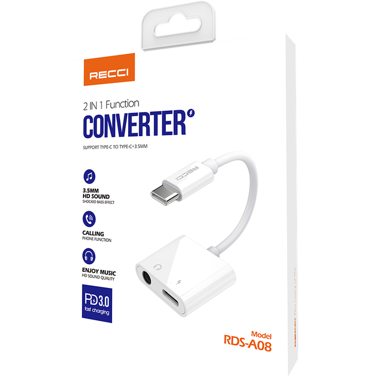 مبدل 2 در 1 تایپسی Recci مدل RDS-A08 (جک 3.5 میلیمتری + شارژ سریع PD)