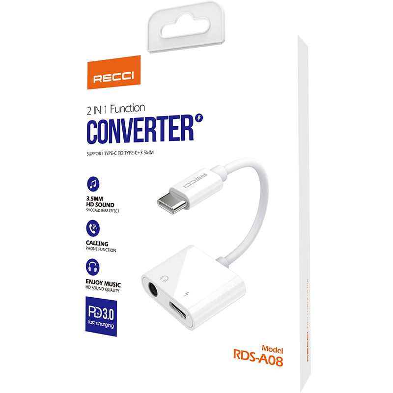 مبدل 2 در 1 تایپسی Recci مدل RDS-A08 (جک 3.5 میلیمتری + شارژ سریع PD)
