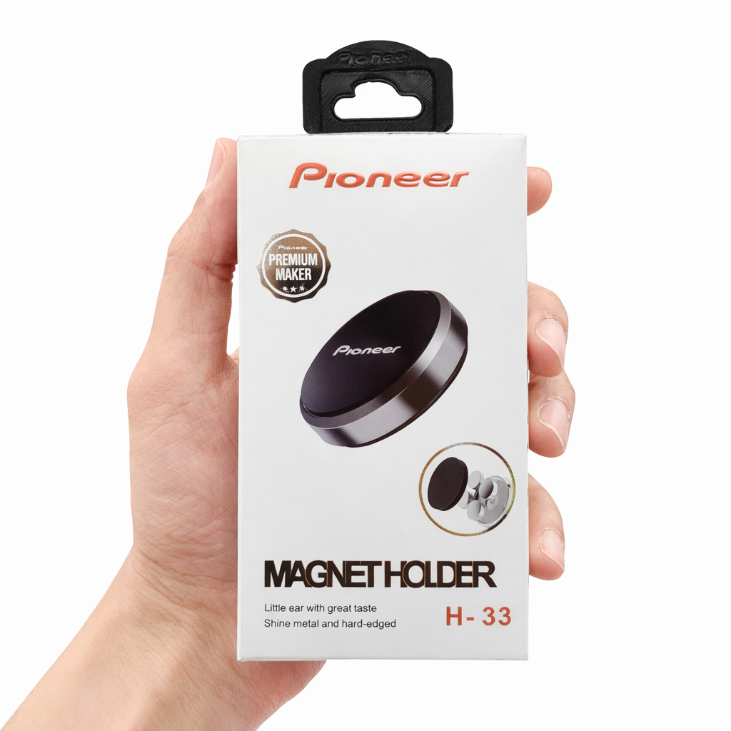 هولدر مغناطیسی موبایل Pioneer مدل H-33 یک نگهدارنده جمعوجور، شیک و فوقکاربردی برای خودرو است که با استفاده از مگنت قدرتمند و ایمن، گوشی شما را بدون نیاز به گیره یا باز و بسته کردنهای آزاردهنده، محکم سر جای خودش نگه میدارد.
