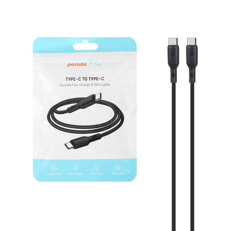 کابل شارژ Type-C به Type-C برند Porodo Blue با توان ۶۰ وات و طول ۱ متر